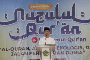 Mengangkat tema “Al-Quran, Amanah Ekologis, dan Jalan Perdamaian Dunia”, Prof. Wajidi membedah secara mendalam makna turunnya Al-Qur’an dan relevansinya terhadap pembentukan akhlak, pelestarian lingkungan, serta kerukunan umat.